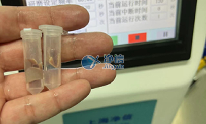 此次5分鐘就已經完全研磨完成。效果非常好,因此后續需要提RNA,因此對溫度的需求高,所以選擇冷凍研磨儀完成實驗,經過多次了解和對比后老師們選用上海凈信冷凍研磨儀做10ml的樣本,三維冷凍研磨儀做小量的樣本,完全代替人工處理,和高壓均質機。研磨效率更高,效果更好,實驗過程中也沒有交叉污染。解決了老師的研磨問題。