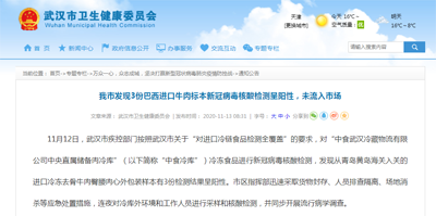 11月12日,武漢衛(wèi)健委發(fā)布消息稱,發(fā)現(xiàn)3份巴西進(jìn)口牛肉標(biāo)本新冠病毒核酸檢測呈陽性。