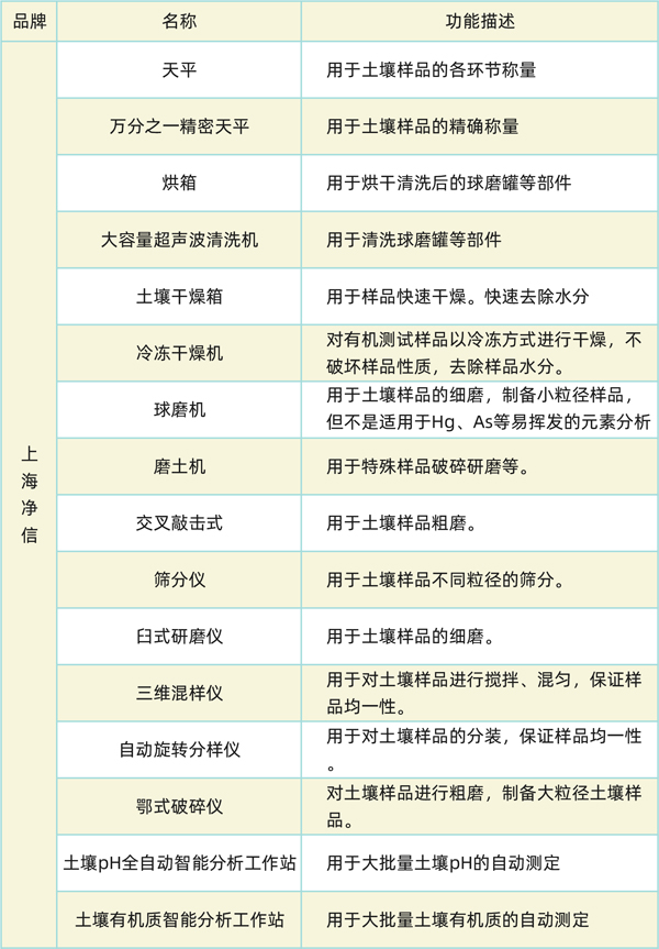 ·下表是此前整理的省級/區(qū)域級土壤中心實驗室設(shè)備設(shè)施裝備清單,供廣大用戶與儀器企業(yè)參考: