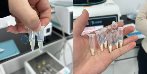 實驗前樣本為淺黃色透明液體,體積較大。實驗后樣本體積明顯減小成固體狀,樣品完全濃縮干透。整個過程在低溫下進行,真空下快速蒸發的同時,很好的維護了蛋白活性。