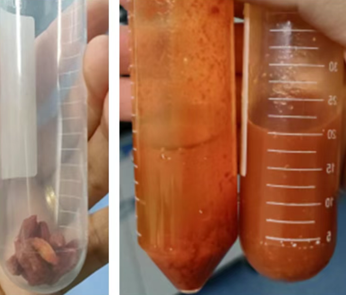 高速均質刀頭在密閉環境中瞬間將枸杞果肉破碎至微米級,細胞壁被充分打破。