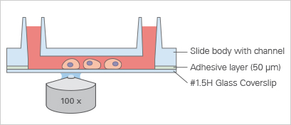 由于粘合層的存在,μ-Slide I Luer玻璃底部的通道高度比μ-Slide I Luer增加了50μm。